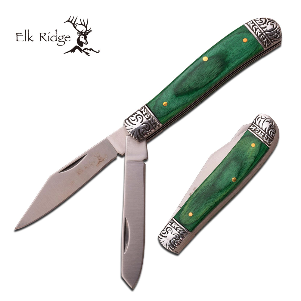 Canivete com 2 lâminas cabo em madeira.