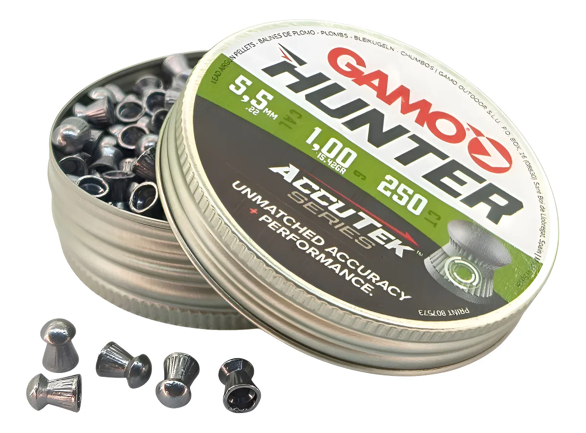 Os chumbinhos com a tecnologia AccuTek™ representam uma revolução no catálogo da Gamo. - Nova fórmula: a inovação tecnológica foi combinada com materiais de produção aprimorados para tornar este pellet possível. - Precisão aprimorada: os chumbinhos da série Gamo AccuTek são mais precisos, capazes de fazer ótimos agrupamentos. - Melhor aerodinâmica: os chumbinhos foram redesenhados, e tiveram a realocação do seu centro de massa para maior aerodinâmica. - Ajuste ideal: uma nova liga de chumbo mais dúctil e maleável para melhor adaptação ao cano (câmara e raia). - Calibre: 5.5mm / .22 - Peso: 1 grama / 15,42 grains - Embalagem: Lata com 250 chumbinhos