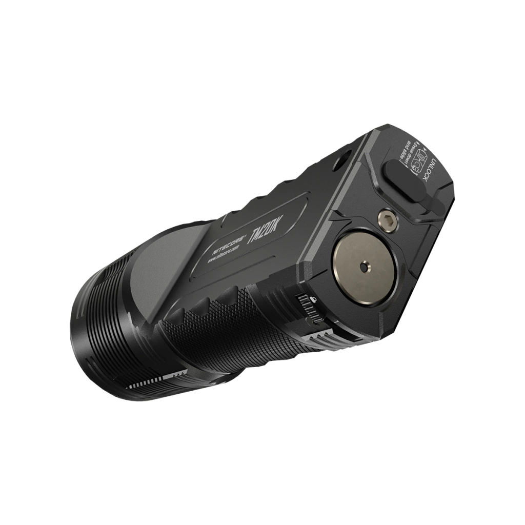 Ela possui com um sistema operacional inovador para alternar os modos de usuário, é operável com uma só mão e está equipada com baterias integradas de íon de lítio 21700 e uma porta de carregamento USB-C. Seu design monobloco usinado em CNC torna a TM20K em uma lanterna sólida e durável, e ela apresenta ainda botões de controle ambidestros, especialmente projetados para atividades táticas.